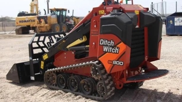 Ditch Witch SK800 Stand-On Skid Steer, Bucket w/Edge | Forks ($50/Day | $150/Week | $450/Month) | Grapple Bucket ($100/Day | $300/Week | $900/Month)| Trencher ($300/Day | $600/Week | $1,800/Month) | Brushcutter ($350/Day | $1,050/Week | $3,150/Month) | Auger w/Dirt Bit ($150/Day | $300/Week | $900/Month) | Auger w/Rock Or Stump Bit ($300/Day | $900/Week | $2,700/Month), 24.8 HP Diesel Engine, 74 Inch Hinge Pin Height, 860 Pound Rated Operating Capacity, 2,300 Pound Tipping Capacity, 76 Inch Dump Height, 7.2 MPH Travel Speed, Auxiliary Hydraulics 14.5 GPM, Hydrostatic Drive, 42 Inch Width With Standard Bucket, 2,700 Pound Operating Weight, Universal Attachment Plate, Dual Lever Ground Drive Controls, Operator Platform With Suspension