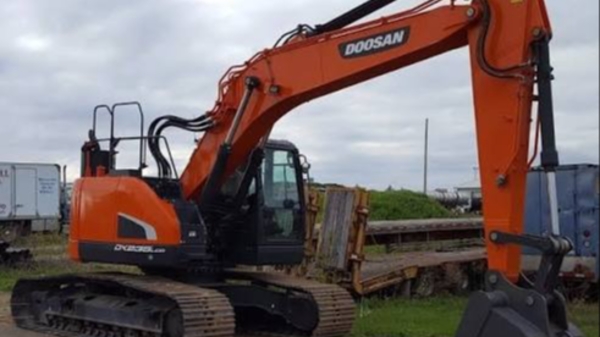 Cab, A/C, Heat, R Boom, 48" Bucket w/Teeth | Doosan, Engine Model DL06P, Net Power 181 HP @ 1,900 RPM, Gross Power 189 HP @ 1,900 RPM, Max Torque 593 Lb-Ft @ 1,400 RPM, Number Of Cylinders 6, Aspiration Turbocharged Air-To-Air Intercooled, Emissions Tier 4 Final, Fuel Tank Capacity 81.9 Gal, Hydraulic System Capacity 60.8 Gal, Hydraulic Tank Capacity 50.2 Gal, DEF Tank Capacity 9.3 Gal, Engine Oil Capacity 7.2 Gal, Cooling System Capacity 8.2 Gal, Swing Drive Fluid Capacity 1.4 Gal, Travel Device Fluid Capacity (Each) 0.8 Gal, Electrical System 24 V, Alternator 80 Amps, Batteries 2 × 12 V 100 Ah, Travel Speed Low 2 MPH, Travel Speed High 3.7 MPH, Swing Speed 11.3 RPM, Drawbar Pull 64,375 Lb, Track Shoes Per Side 49, Standard Track Shoe Width 24", Optional Track Shoe Widths 28", 32", 36", Maximum Digging Depth 21' 10", Maximum Reach At Ground Level 31' 6", Maximum Loading Height 26' 1", Bucket Capacity Approx. 1.2 Yd³, Overall Length Approx. 29' 6", Shipping Height 9' 9", Shipping Width 9' 10".