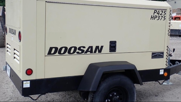 Doosan P425/HP375WCU-T4F Portable Air Compressor (Hose Available-Select Under Add Attachment-Your Dedicated Rental Coordinator Will Confirm Total Amount Needed After Order Is Placed), Rotary Screw Single-Stage Design, Dual Pressure Operation, 425 CFM At 100 PSI And 375 CFM At 150 PSI, Adjustable Operating Pressure Range From 80 PSI To 175 PSI, Single 1.25 Inch NPT Air Discharge Outlet, 60 Gallon Diesel Fuel Tank, Approximate Runtime Of 10.9 Hours At Low Pressure And 10.6 Hours At High Pressure, Powered By A Cummins QSB4.5L Tier 4 Final Diesel Engine, Four Cylinder Configuration, 4.5 Liter Displacement, Rated Engine Speed Of 2200 RPM In Low Pressure Mode And 1950 RPM In High Pressure Mode, Idle Speed 1500 RPM, Engine Output Rated At 130 HP Low Pressure And 138 HP High Pressure, 24 Volt Electrical System. Overall Dimensions With Running Gear Include An Approximate Length Of 152.5 Inches, Width Of 78.2 Inches, Height Of 69.9 Inches, Track Width Of 66.6 Inches, And 15 Inch Tires, Shipping Weight Without Fuel Approximately 4,470 Pounds And Operating Weight With Fuel Approximately 5,030 Pounds, Dimensions Without Running Gear Include A Length Of 104.2 Inches, Width Of 60.7 Inches, Height Of 61 Inches, Shipping Weight Without Fuel Approximately 4,207 Pounds And Operating Weight With Fuel Approximately 4,767 Pounds, Designed For Heavy Jobsite Use With Dual Pressure Flexibility, Truck Or Trailer Mounting Capability, And Reliable Performance Across Multiple Pneumatic Applications.